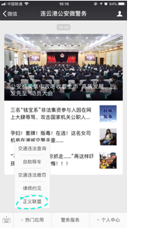 第一步,微信添加公众号【连云港公安微警务】,关注;