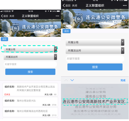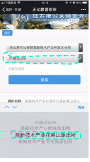 第五步,点击所属分局,选择连云港市公安局高新技术产业开发区分局;