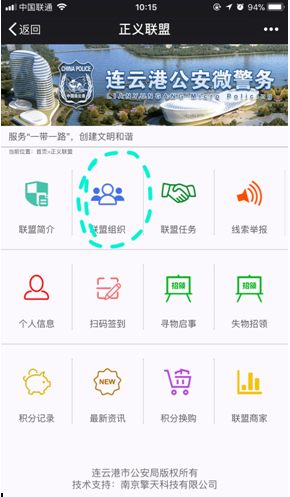 第三步,点击联盟组织,进入正义联盟组织界面;