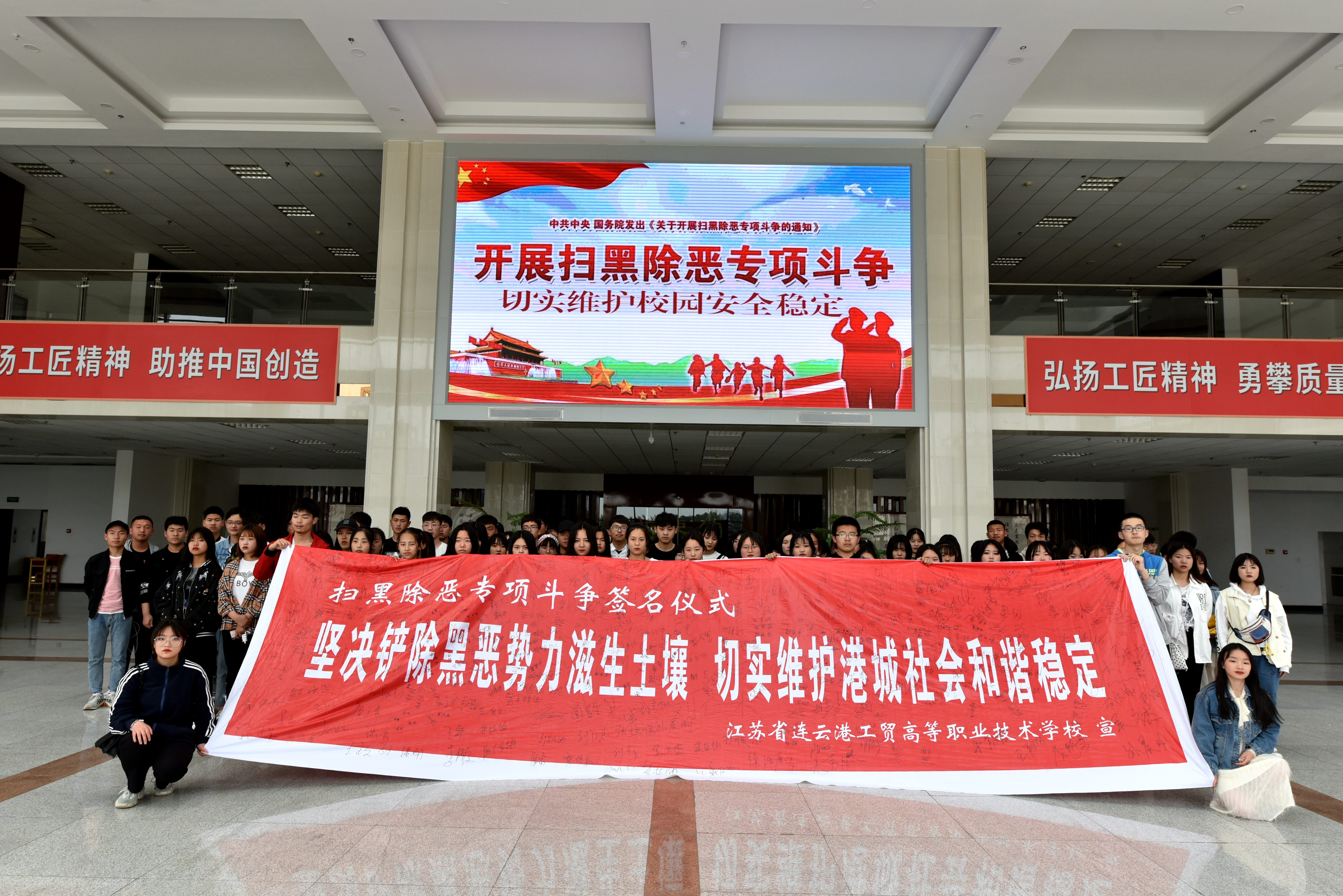 5月5日下午,学校安全保卫处组织开展“扫黑除恶”专项斗争校园集中宣传月活动集体签名仪式。在写有“坚决铲除黑恶势力滋生土壤,切实维护港城社会和谐稳定”的条幅前,广大师生郑重地签上了自己的名字,师生们纷纷表示,今后将积极参与到“扫黑除恶”专项斗争中去,为营造和谐、健康、安定的校园环境贡献自己的一份力量。