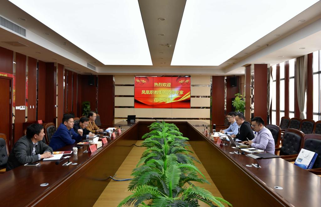 4月3日,凤凰职教中德项目部总监张俊一行三人来校参观交流,洽谈德国AHK机电一体化高技能人才培养项目相关事宜。学校党委书记、校长张建明、副校长杨健与机电一体化专业负责人参加洽谈会。