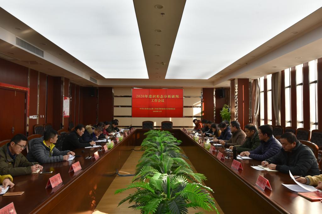 12月16日下午,在学校715会议室召开了2020年度意识形态专题分析研判工作会议。会议由校党委副书记、副校长祁德新主持,校党委书记、校长张建明出席会议并做重要讲话,各部门负责人和支部书记参加会议。