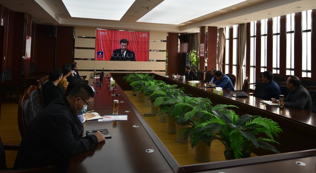 学校领导和部门负责人在致远楼715会议室集中,各党支部、各部门依托广播、电视、网络等媒介,认真组织党员、职工收听收看中国共产党第二十次全国代表大会开幕会直播盛况。