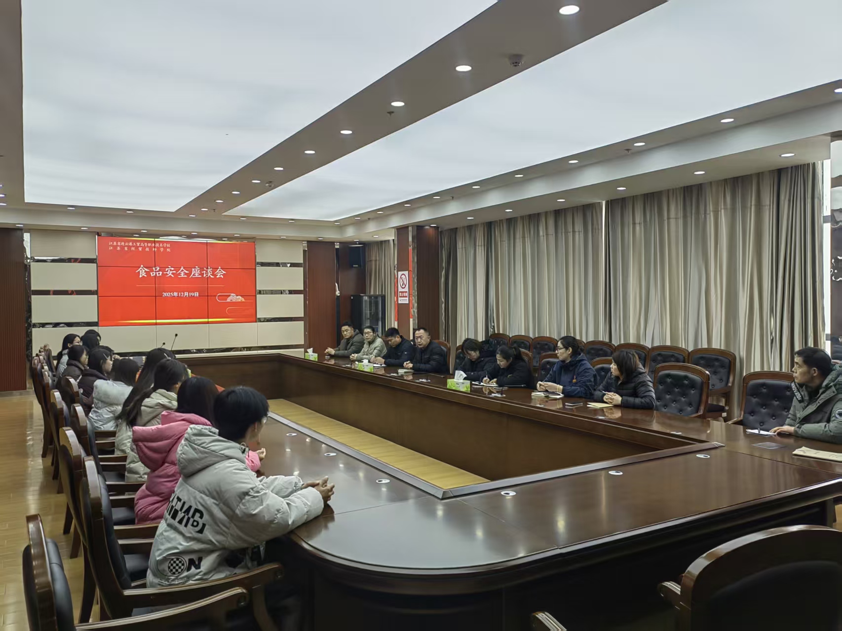 为保障师生饮食安全,提升膳食质量,我校后勤管理处于2025年12月19日在致远楼715会议室召开食品安全及膳食建议座谈会。食堂负责人、超市负责人、师生代表及后勤管理处相关人员齐聚一堂,围绕食材采购、加工流程、营养搭配等议题展开讨论。与会师生积极建言,提出优化菜品结构等建议。后勤管理处表示将严格落实食品安全责任制,加强日常监管,确保师生吃得安心、吃得健康。此次座谈会为构建安全、营养的校园膳食环境奠定了坚实基础。