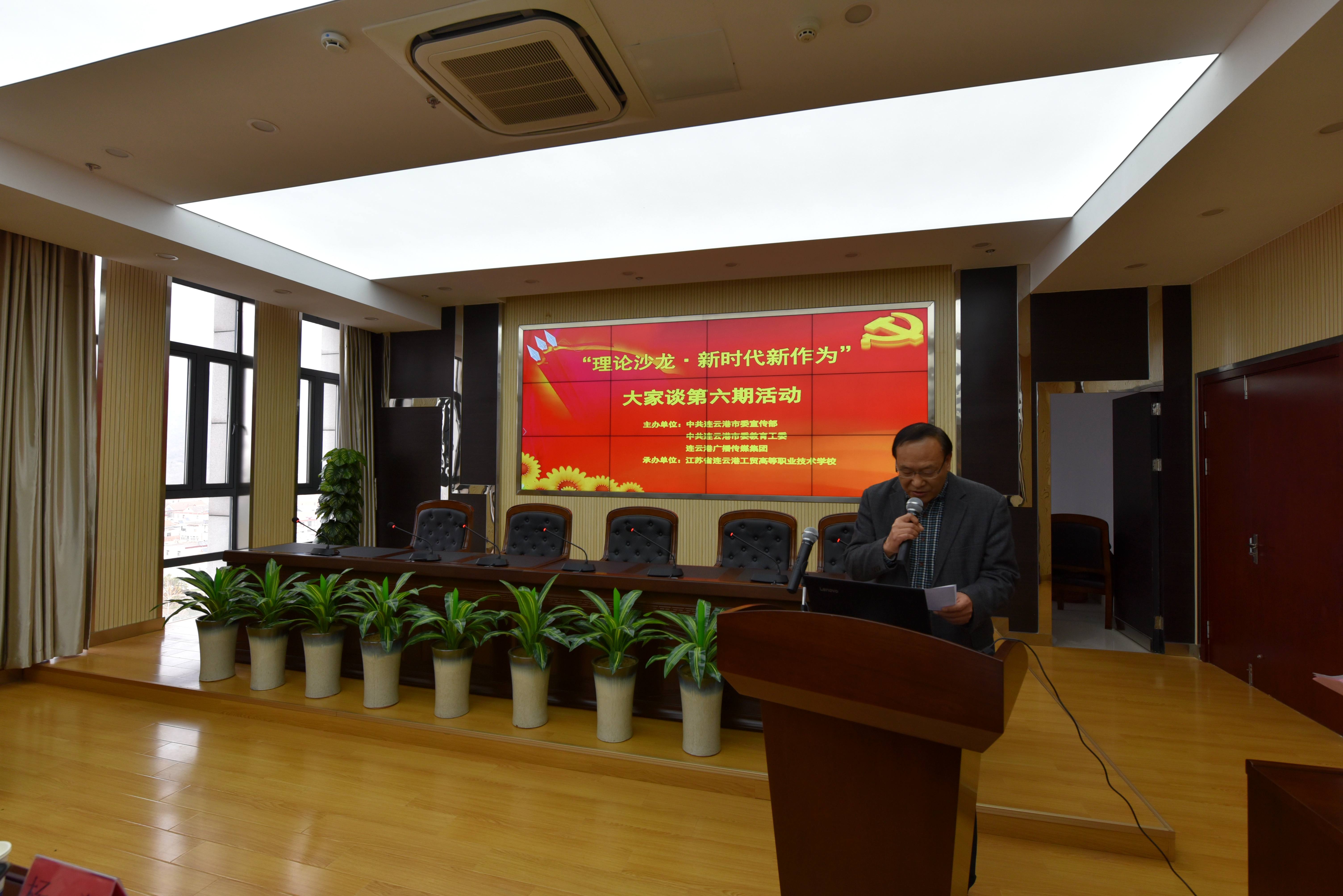 11月21日下午,由市委宣传部、市委教育工委、市广电传媒集团举办,学校承办的第六期“理论沙龙•新时代新作为”大家谈活动在致远楼隆重举行,学校党委委员、纪委书记郭家明同志代表学校出席并致欢迎词。