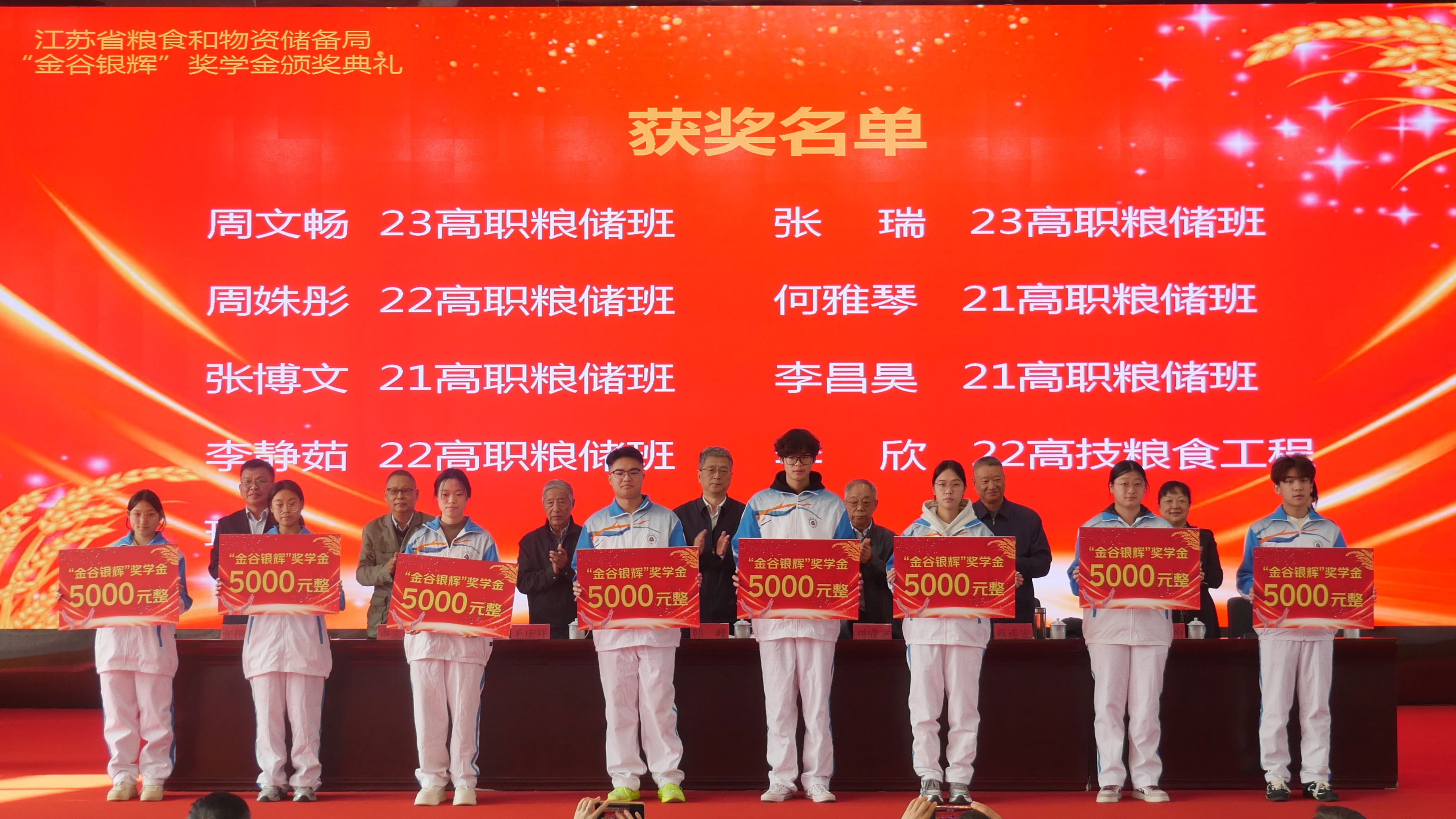 2025年10月27日下午,江苏省连云港工贸高等职业技术学校求真会堂内气氛热烈,掌声雷动。由江苏省粮食和物资储备局离退休老干部捐资设立的“金谷银辉”奖学金颁奖典礼在此隆重举行。江苏省粮食和物资储备局一级巡视员韩峰、省局离退休干部代表,以及粮油食品工艺系粮食专业师生齐聚一堂,共同见证了这一激励学子、传承行业精神的盛会。会议由学校党委副书记、校长潘迪主持。