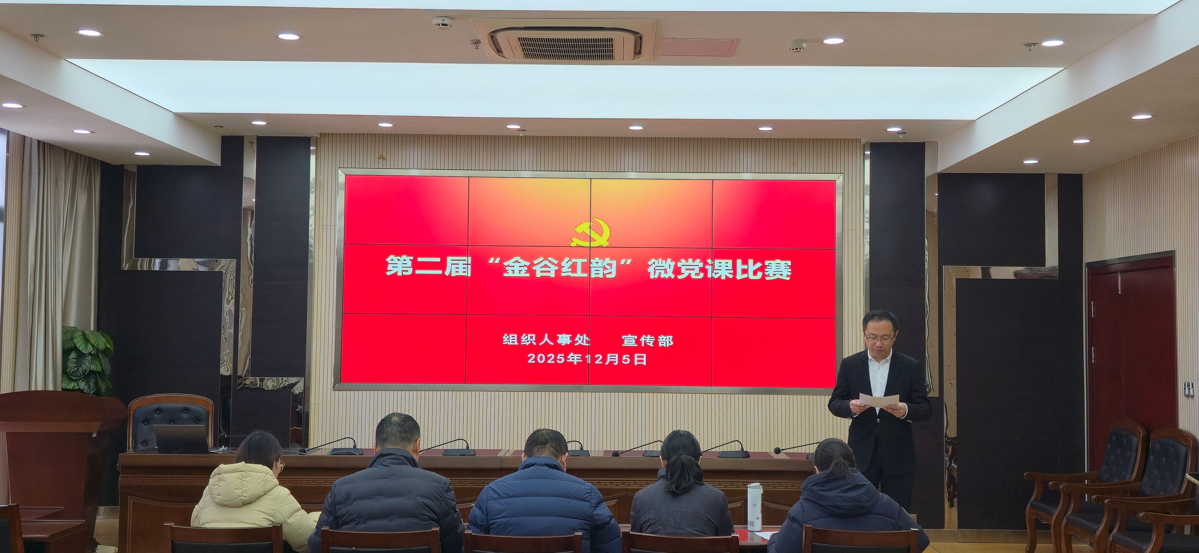 12月5日,学校在致远楼举行第二届“金谷红韵”微党课比赛。共有10余位党员教师经各支部选拔推荐参与比赛。