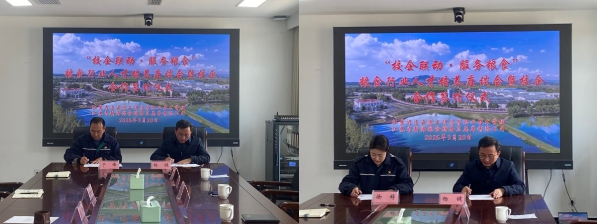 为深化产教融合、强化党建引领,精准对接粮食储备行业人才需求,助力地方粮食安全保障体系建设,近日,学校党委委员、副校长杨健,粮油食品工艺系负责人及粮油团队专业教师等几人一行赴江苏省新海粮食储备直属库有限公司、连云港市储备粮管理有限公司,举行“校企联动·服务粮食行业人才培养座谈会暨校企合作签约仪式”,开启校企协同育人、党建业务融合新篇章。