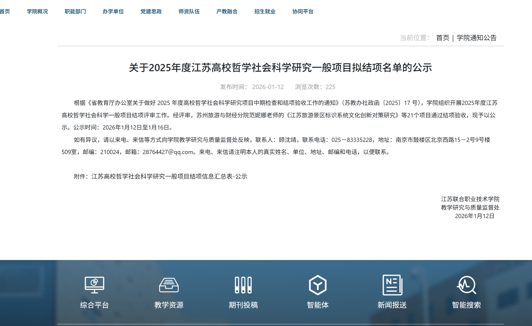 近日,我校尤富仪老师主持的江苏省教育厅2022年度江苏高校哲学社会科学研究一般项目《自媒体视角下职业院校学生顶岗实习权益保障机制研究》(批准号:2022SJYB0762),顺利通过省教育厅审核并结项。江苏高校哲学社会科学研究项目立项激烈竞争,获批难度极大,结项要求颇高。此次成功结项,是我校教科研工作对接省级高水平研究的一项重要突破。