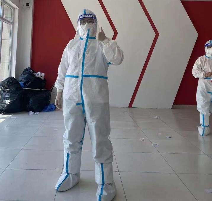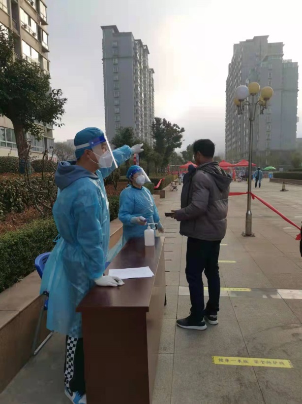 04.沈书明,18高职汽修2班,在海州区新海街道河西社区麻纺小区上门采样工作。