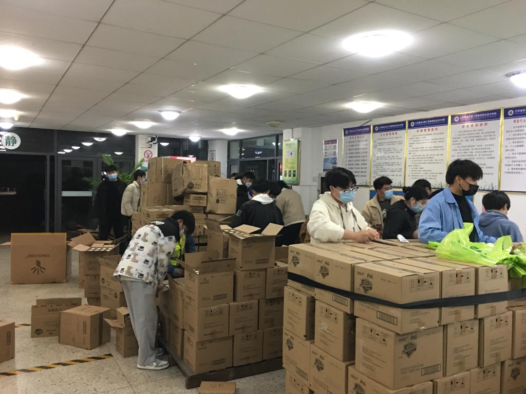 带领学生分发物资