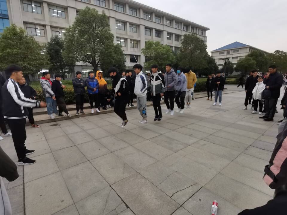 23号24号这两天是集体跳绳的比赛活动。气温微寒,同学们在班长的带领下早早的来到比赛场地,开始预练。不一会儿人越来越多,正式比赛也悄然而临。