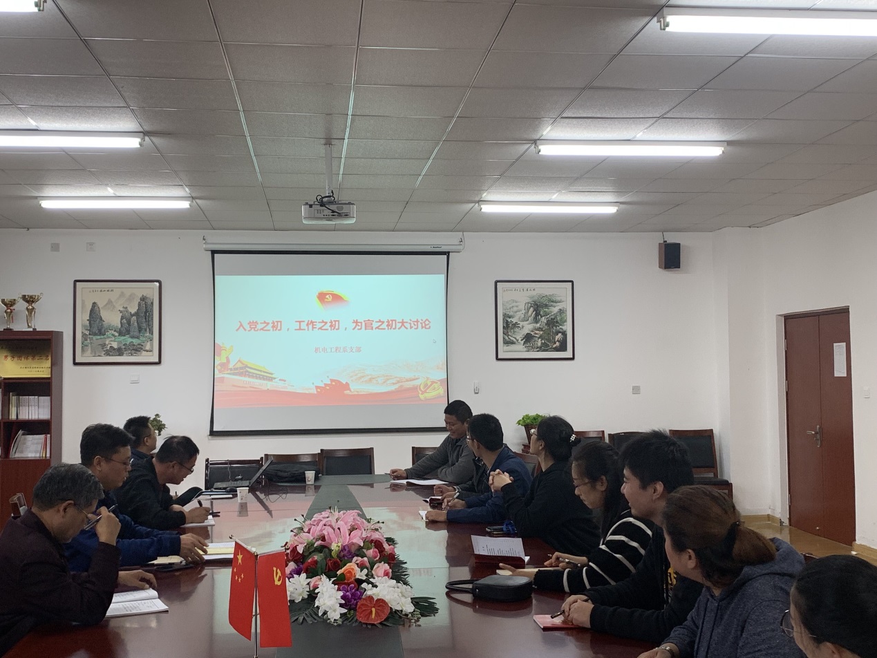 10月16日下午,机电工程系党支部在3号楼C401开展“入党之初,工作之初,为官之初”大讨论活动,支部副书记主持会议,机电工程系支部全体党员参加。
