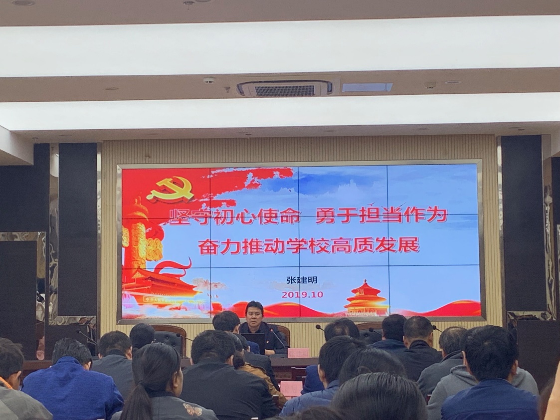 为深入开展“不忘初心,牢记使命”主题教育,2019年10月30日下午,机电工程系党支部在致远楼806会议室参加政治学习暨张校长讲党课活动,会议由张建明校长主持,全校中层干部与各支部党员参加会议。