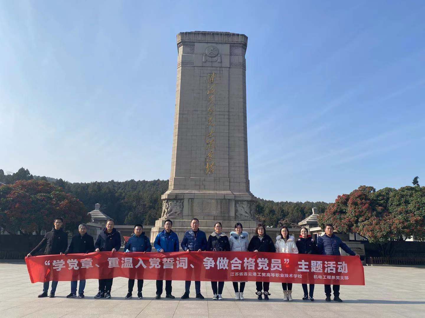 为迎接建党100周年,弘扬革命精神,增强党组织凝聚力和向心力,提升党员党性修养。 2020年12月6日,机电工程系党支部和行政一支部共赴徐州参观淮海战役纪念馆,瞻仰先烈事迹,回忆峥嵘岁月,开展“学党章、重温入党誓词、争做合格党员”主题党日活动。