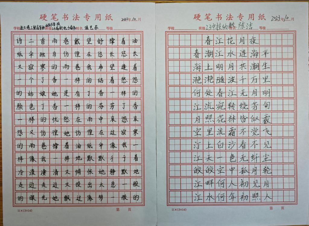 23高职电子商务 邰一冉 23高职国商 孟雨彤 (软笔)