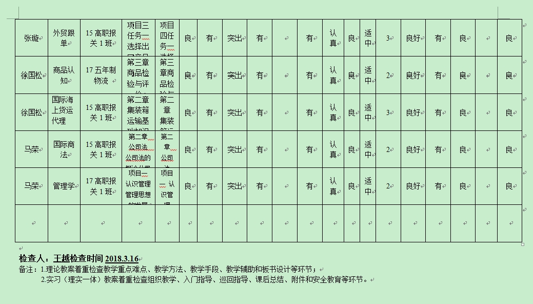 2017-2018学年第二学期教学常规检查反馈(第一次)