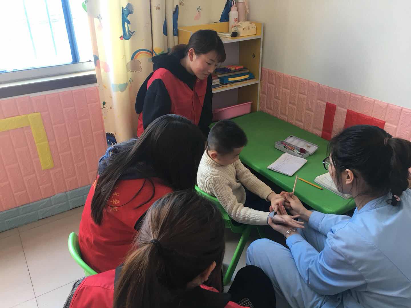 在活动过程此外,志愿者们了解孩子们康复训练的情况,和他们做游戏,给他们整理衣服,分发零食。志愿者用爱心、责任心去关爱和尊重每一位儿童,充分展现了经贸学子的高素质与涵养,康复中心相关负责人和医生对我们此行表示感谢与肯定,活动取得了圆满成功。