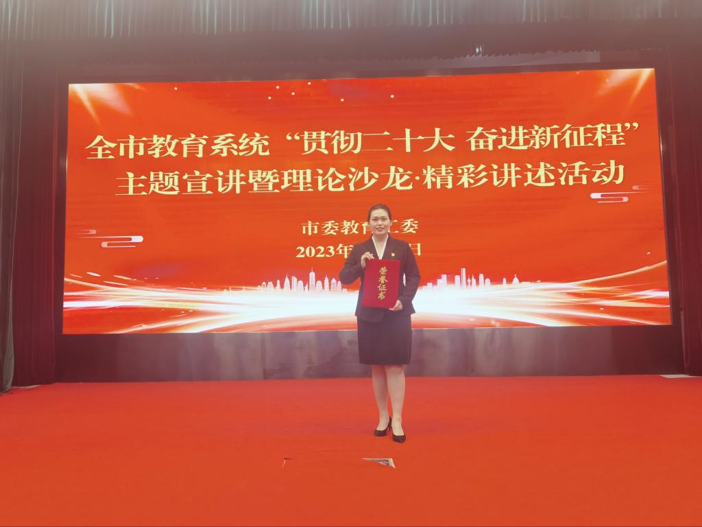 4月27日,在市委教育工委举办的“贯彻二十大 奋进新征程”主题宣讲暨理论沙龙·精彩讲述活动中,我校党员教师江雪荣获二等奖。 活动现场,江雪老师从我校独特的“金谷文化”出发,饱含热情、声情并茂 讲述我校女教师“巾帼不让须眉”、践行党的初心和使命的生动事例。...