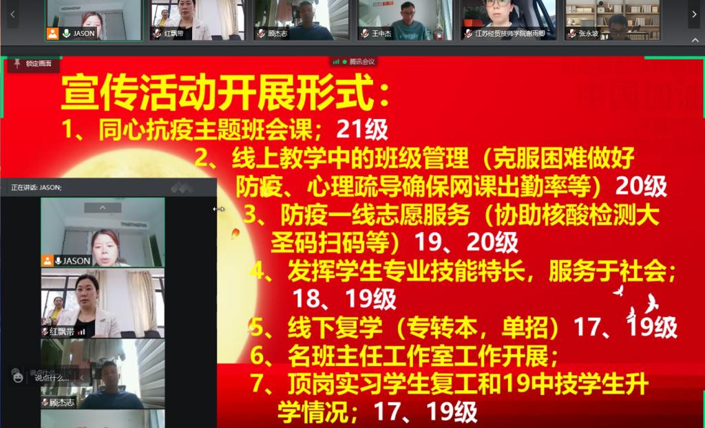 为迎接校职教宣传周活动,同时进一步做好疫情防控期间学生日常教育管理工作,5月7日上午8:30,我系组织召开线上全体班主任工作会议。全体班主任参加了会议,会议由系部分管学生工作的陈海芹副主任主持。