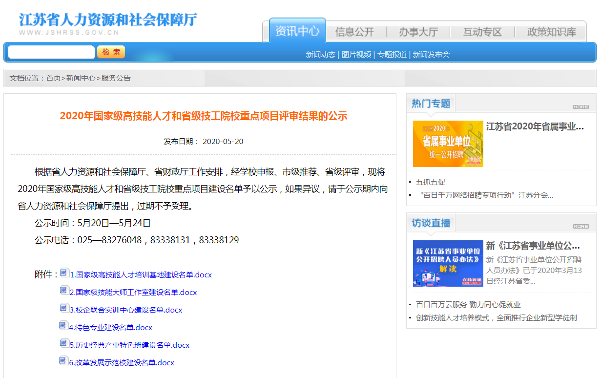 根据江苏省人力资源和社会保障厅、省财政厅工作安排,经学校申报、市级推荐、省级评审,我校粮油食品工艺系“粮食工程”专业被认定为2020年技工院校省级特色专业。