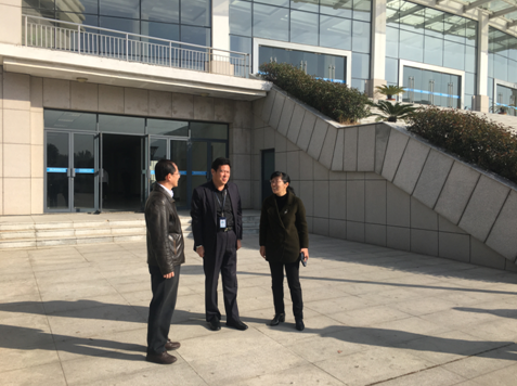 校长张建明(中)、副校长王琳(左)、市教育局职社处处长王习娟一起视察比赛现场