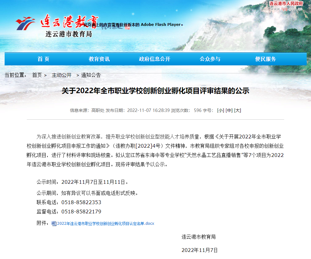 2022年连云港市职业学校创新创业孵化项目认定名单