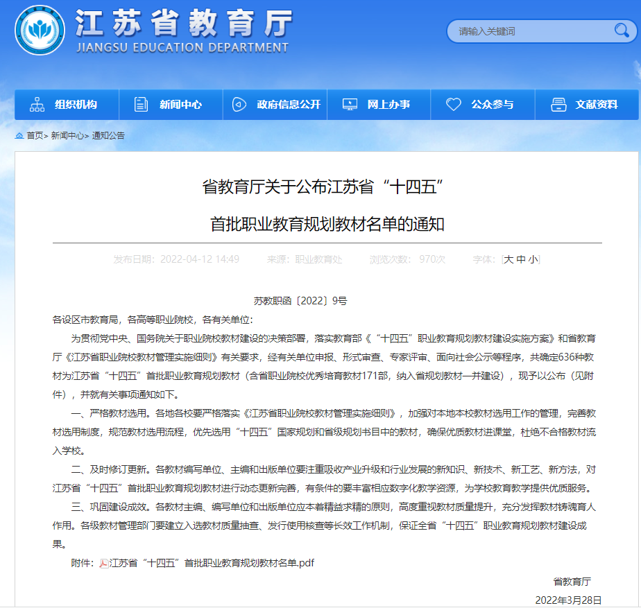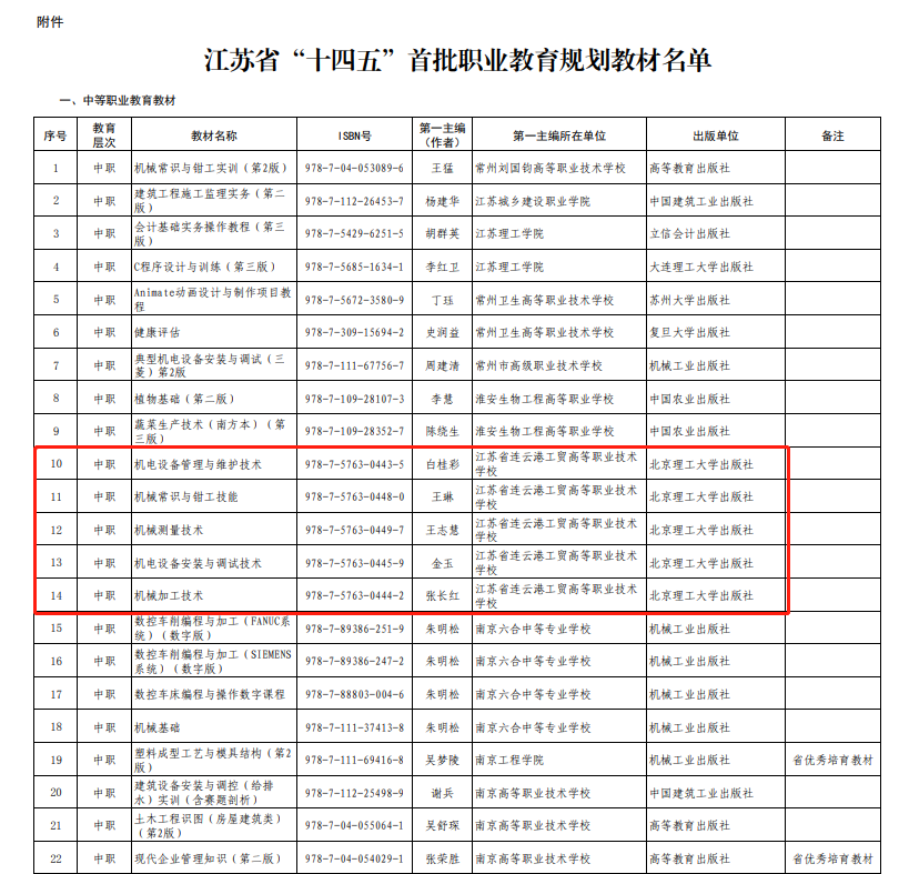 我校教师编写教材入选江苏省“十四五”首批职业教育规划教材