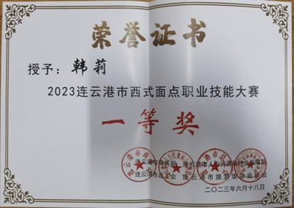 我校粮油食品工艺系韩莉老师参加西式面点单项,荣获“西式面点项目”一等奖。