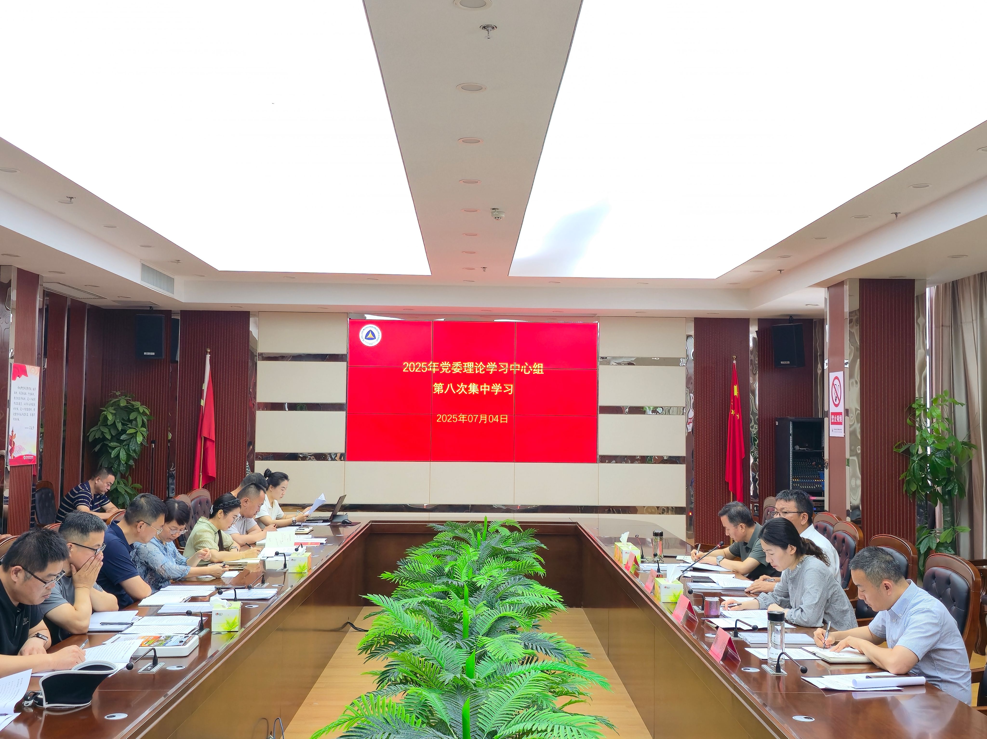 7月4日,学校召开党委理论学习中心组2025年第八次专题学习会。与会人员集中深入学习了习近平总书记《论坚持和完善人民代表大会制度》、《习近平法治思想学习纲要》以及党员干部违纪违法案件案例选编。党委书记张国桥主持会议,党委理论中心组成员全体参会,各部门负责人及各党支部书记列席此次会议。