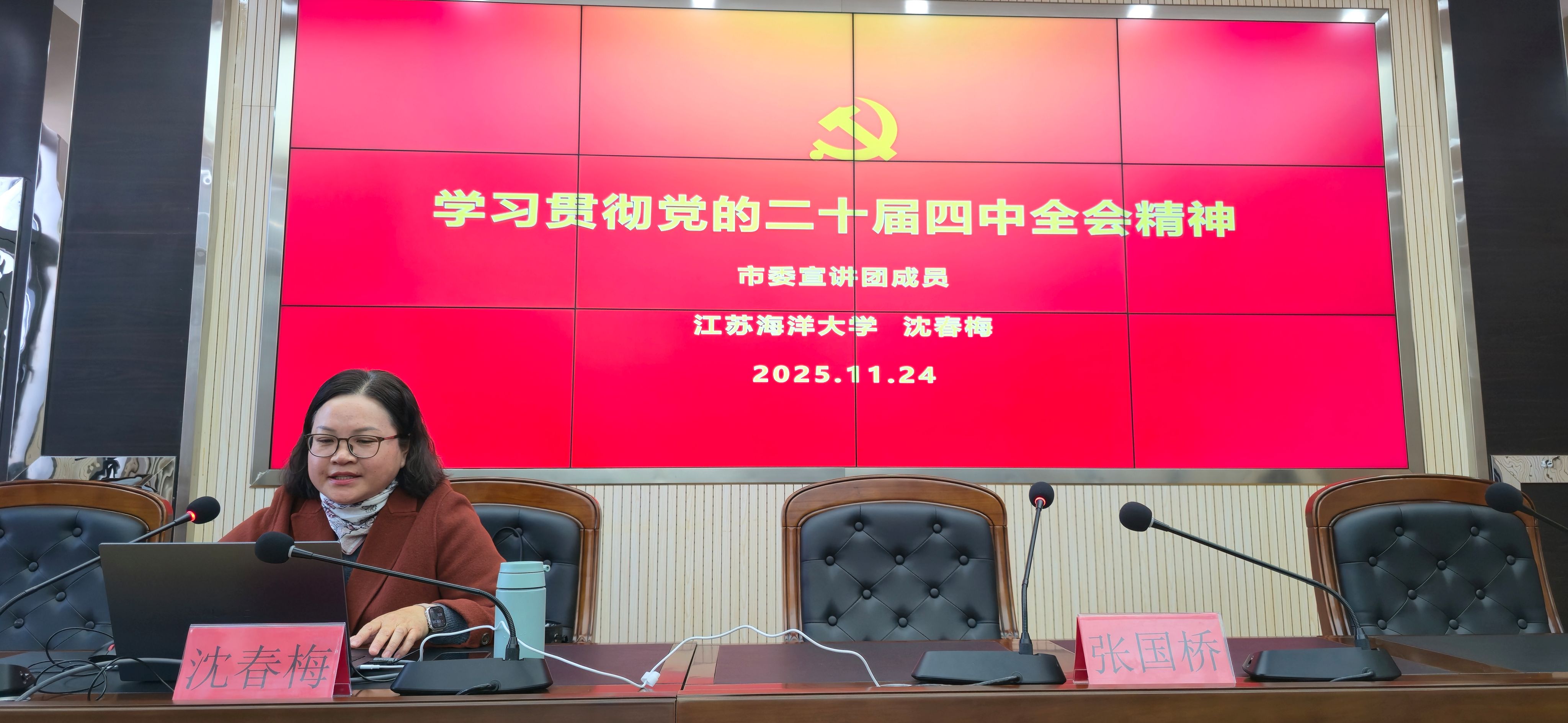 2025年11月24日上午,学校举办学习贯彻党的二十届四中全会精神宣讲会。校党委书记张国桥主持会议并作总结讲话,校领导班子成员、全体中层干部及党员教师代表参加会议。