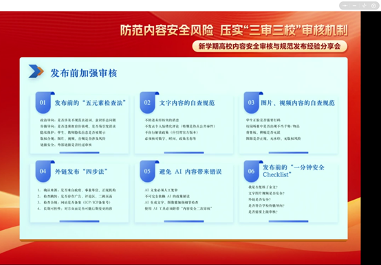 为持续推进学校2026年宣传思想文化工作,切实加强宣传员队伍建设,4月1日,我校举办2026年宣传员第一期专题培训。本次培训以“防范内容安全风险 压实‘三审三校’审核机制”为主题,旨在进一步提升学校信息发布的准确性与安全性。