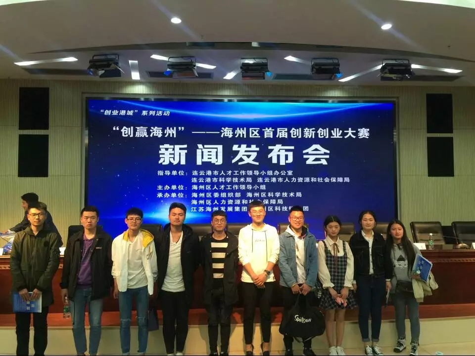 2018年4月2日下午,由海州区人才工作领导小组主办,海州区委组织部、海州区科技局、海州区人社局、江苏海州发展集团、海州区科技镇长团承办的 '创赢海州“一一 海州区首届创新创业大赛,在淮海工学院召开新闻发布会。我校团委办公室老师带领拟参赛的10名同学参加了此次会议。