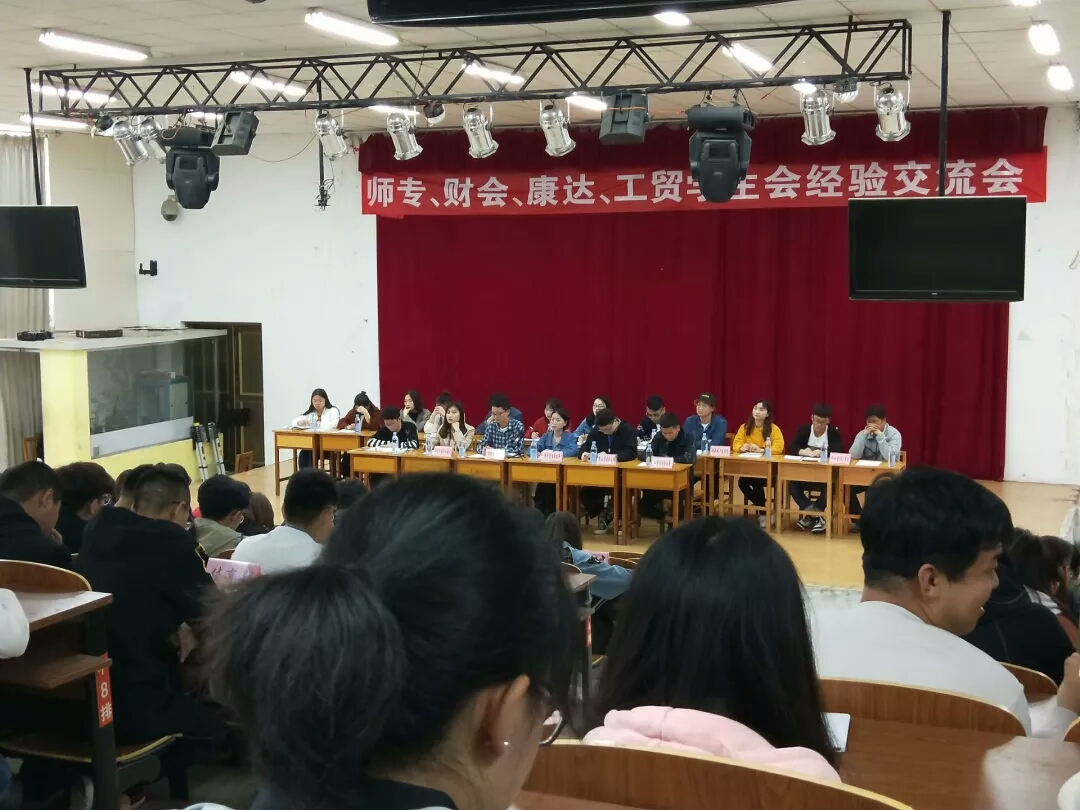2018年4月22日在师专的学生活动中心。举行了首届连云港师专、财会、康达、工贸学生会经验交流会。