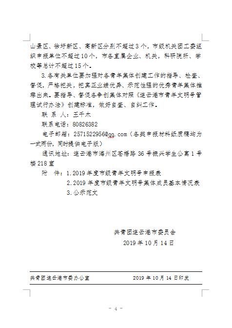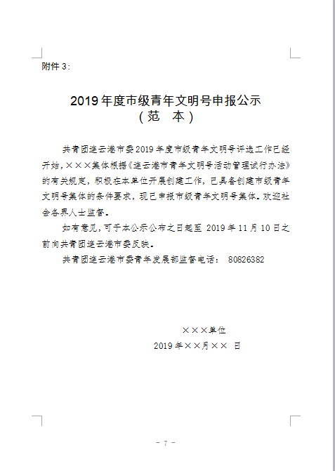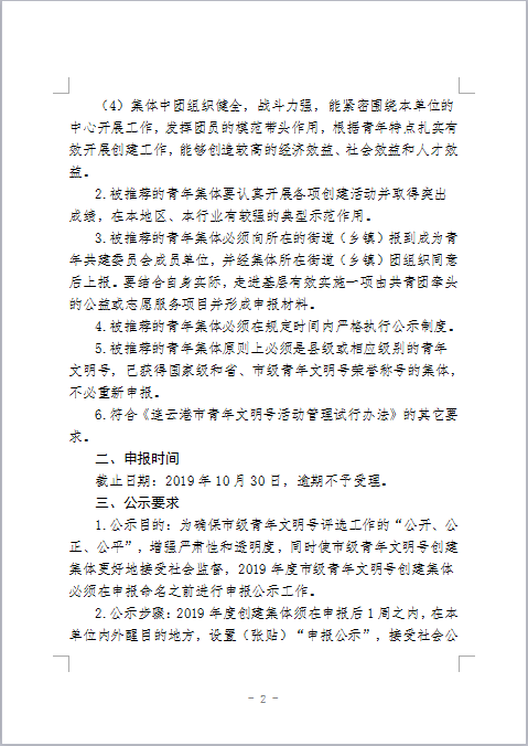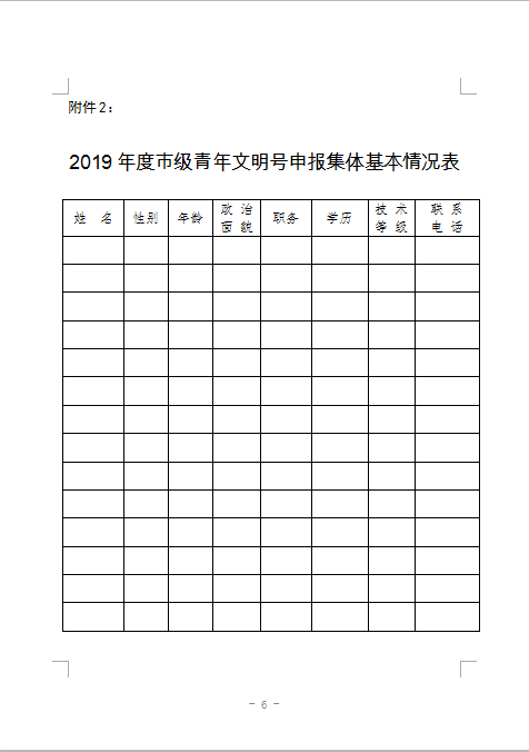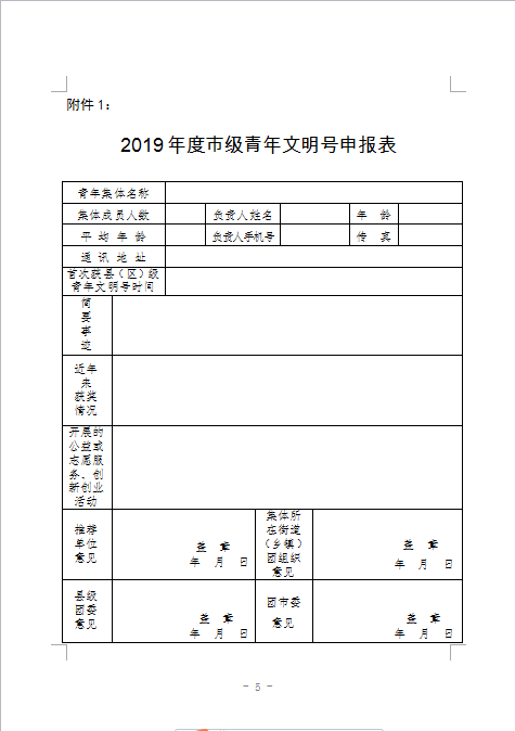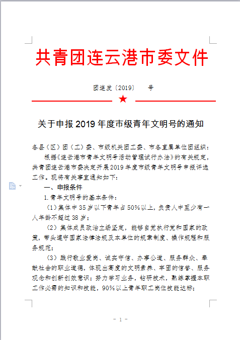 关于申报2019年度市级青年文明号的通知