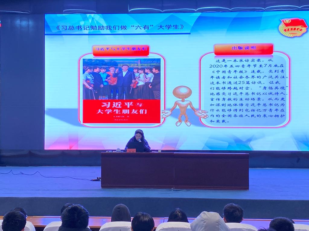 李娜同志首先介绍了“六有”大学生的具体内涵,即有理想、有追求、有担当、有作为、有品质、有修养。接着,她从习近平总书记的许多重要讲话中汲取精华,带领大家学习领悟习近平总书记的青年观。最后,她带领大家回归到大学生如何成为担当民族复兴大任的时代青年这一问题中来,从“坚定理想信念、练就扎实本领、培养创新精神、理论联系实际、担当时代使命”五个方面展开,引起大家的共鸣。