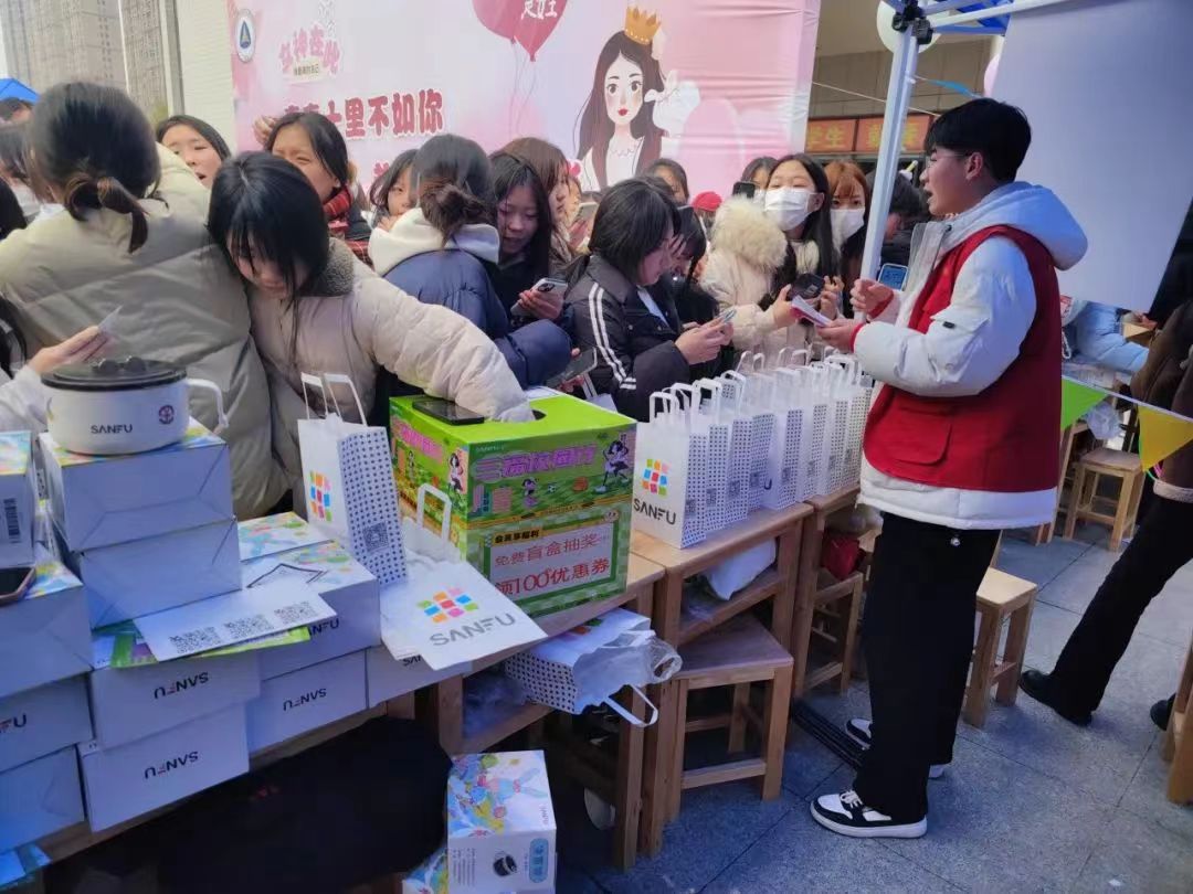 为了营造欢乐的节日氛围,彰显女生们的青春活力与积极向上的精神,同时提高动手能力,丰富校园生活,增强校园文化活力。校学生工作处、团委、学校关心下一代工作委员会、万达商城、校学生组织联合举办了“春风十里不如你,热辣滚烫绽芳华”女生节活动。