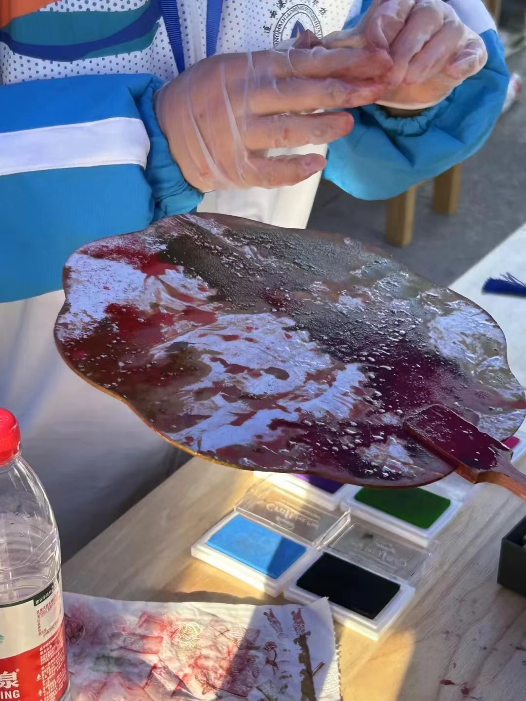 与此同时,同学们还进行了制作非遗漆扇的活动。在志愿者同学的展示下,大家逐渐掌握了制作漆扇的技巧,一个个摩拳擦掌、跃跃欲试。尽管工作量很大,但是同学们依旧热情满满,配合默契。经过大家的不懈努力,一个个空白的扇子变成了造型独特新颖的古风艺术品。活动结束后,大家开心地和自己的制作成果合影留念,感受并分享着劳动喜悦。