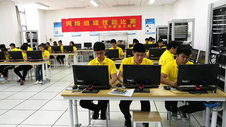 2017年5月,我系学生举行技能比赛,此次比赛项目有网络组建、影视后期制作、广告设计、电子报刊、硬笔书法等。学生正在认真地进行比赛。
