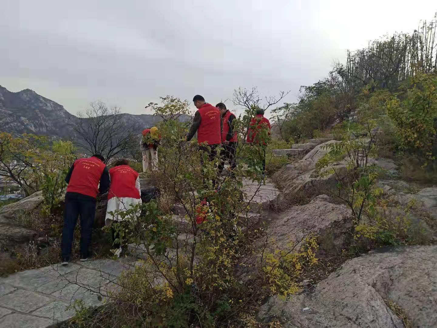 支部党员和志愿者们从家里拿来垃圾桶、抹布,不怕脏、不怕累,分工合作,认真擦拭公共设施,捡拾山上垃圾,活动持续到下午5:00多结束。