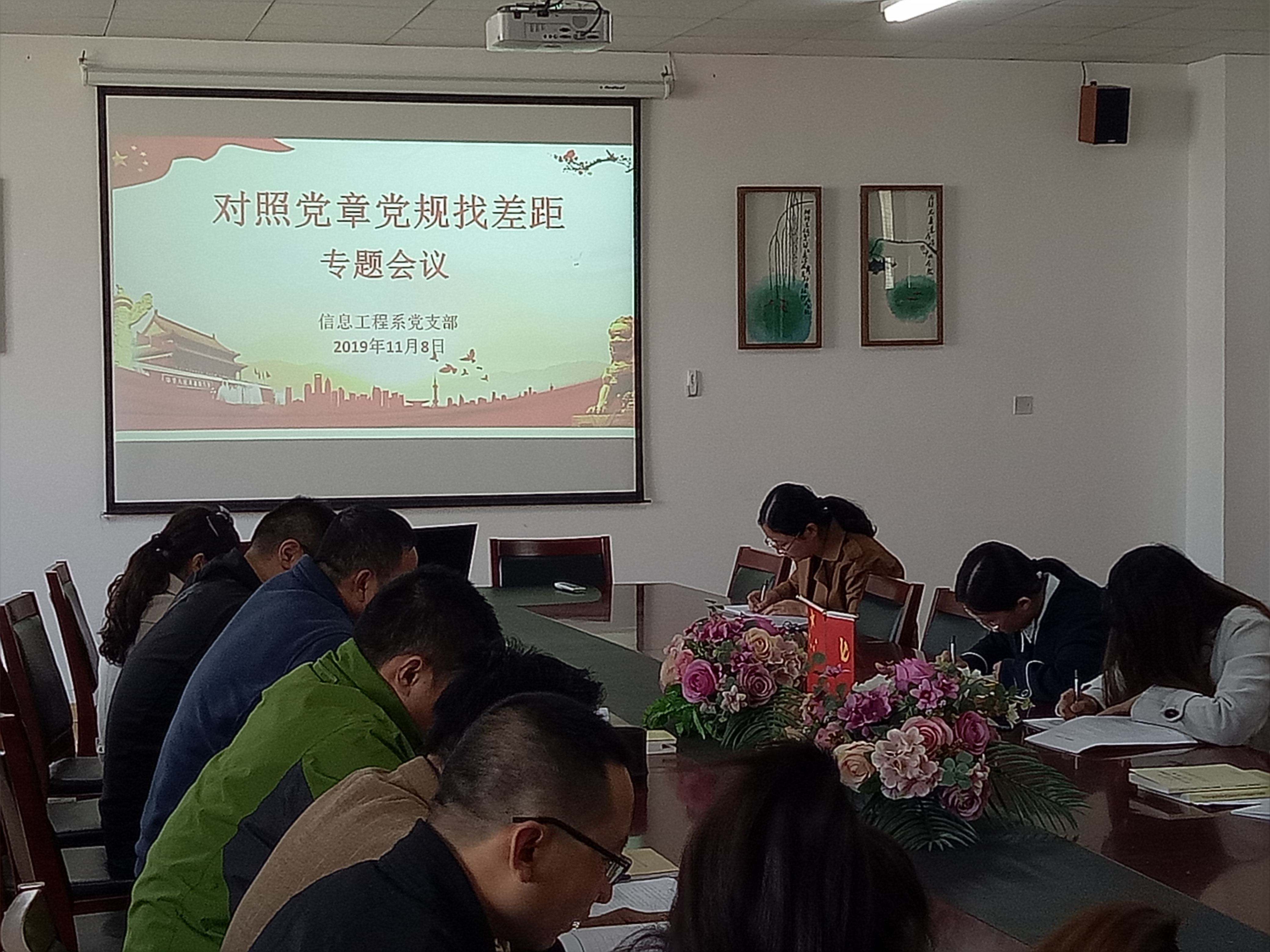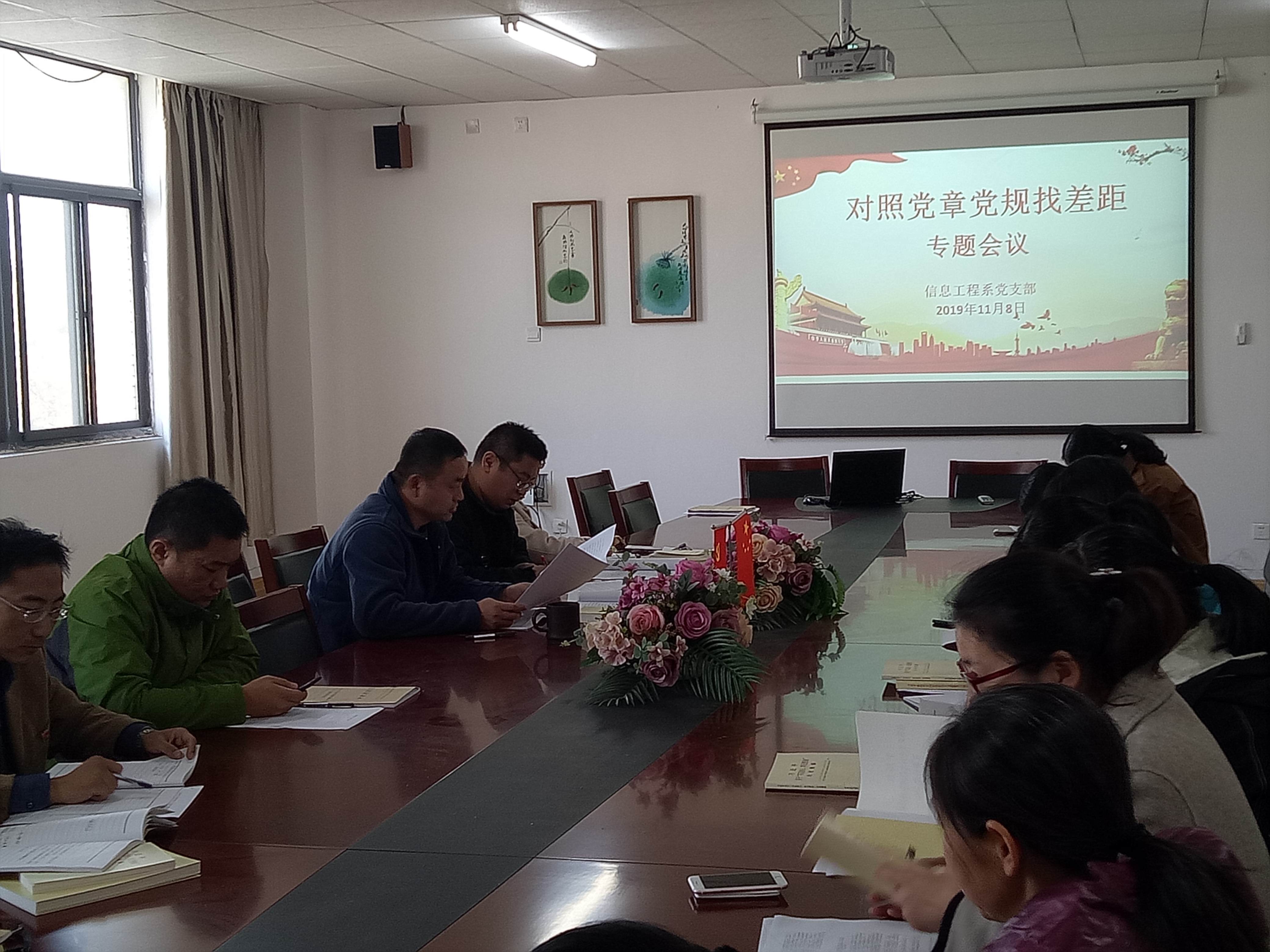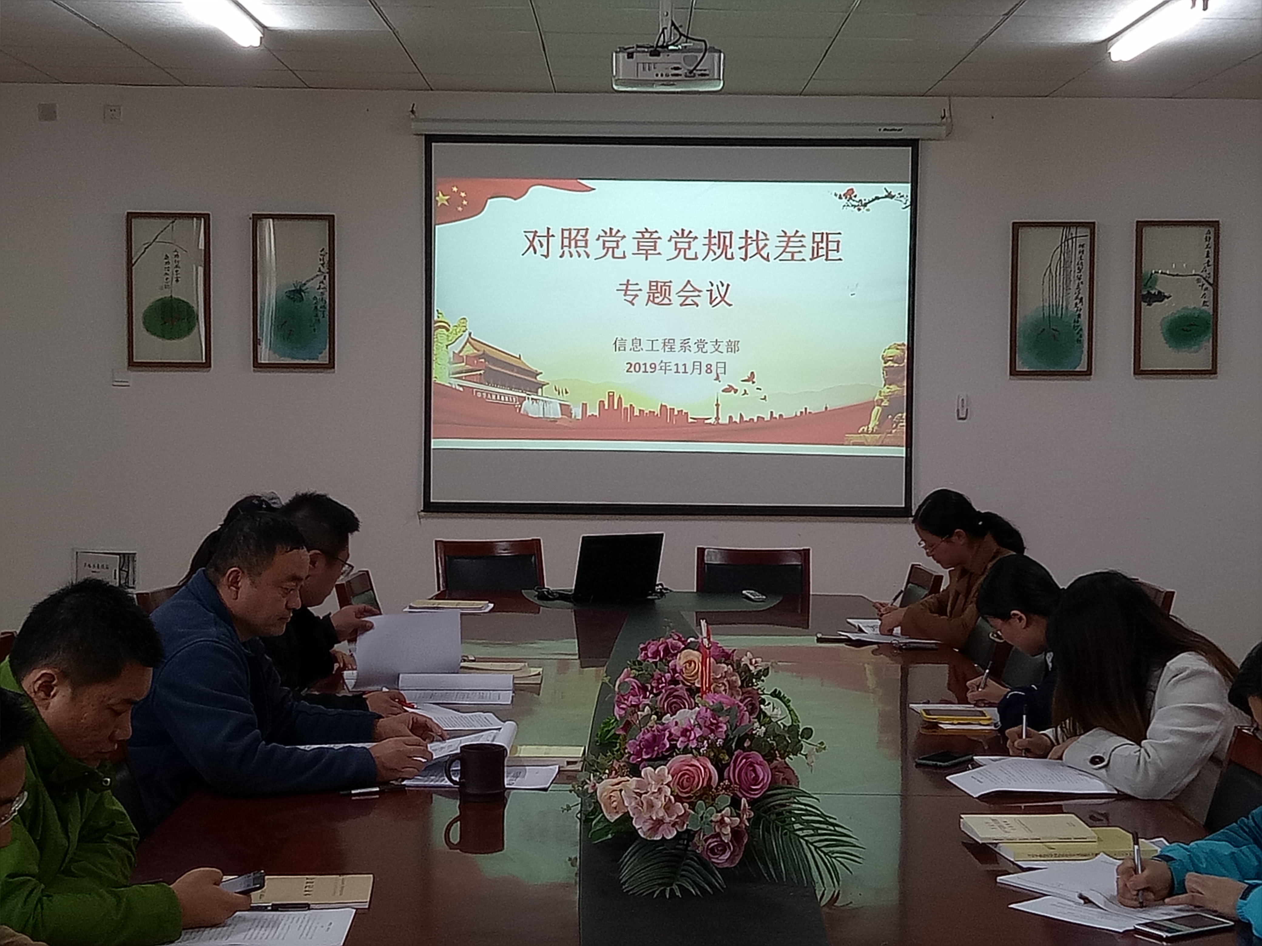 按照"不忘初心、牢记使命"主题教育活动安排,2019年11月8日下午,信息工程系党支部召开"对照党章党规找差距"专题会议,全体党员认真对照党章党规和聚焦"18个是否",查找不足,剖析存在问题,促进自我反思整改。