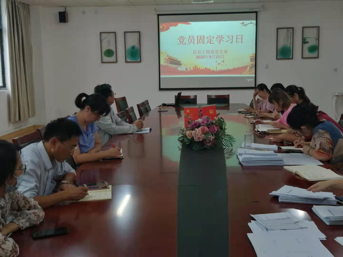 2020年9月20日下午2点,信息工程系支部在党员活动室举行了固定学习日活动。会上组织学习了《初心—红色足迹》和《习近平谈治国理政》第三卷。