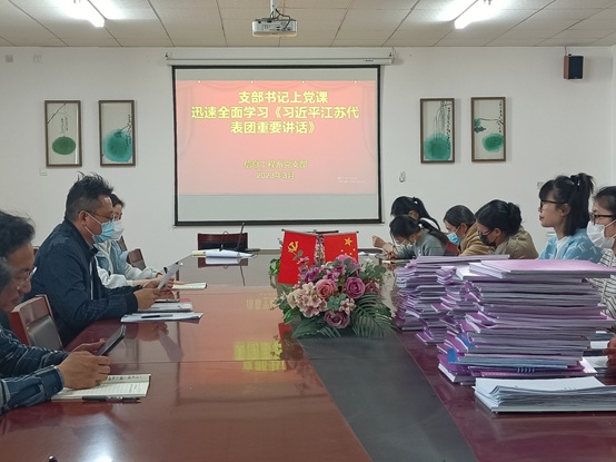 2023年3月10日,在信息工程系党支部活动中心,认真传达学习习近平总书记在参加江苏代表团审议时的重要讲话精神。
