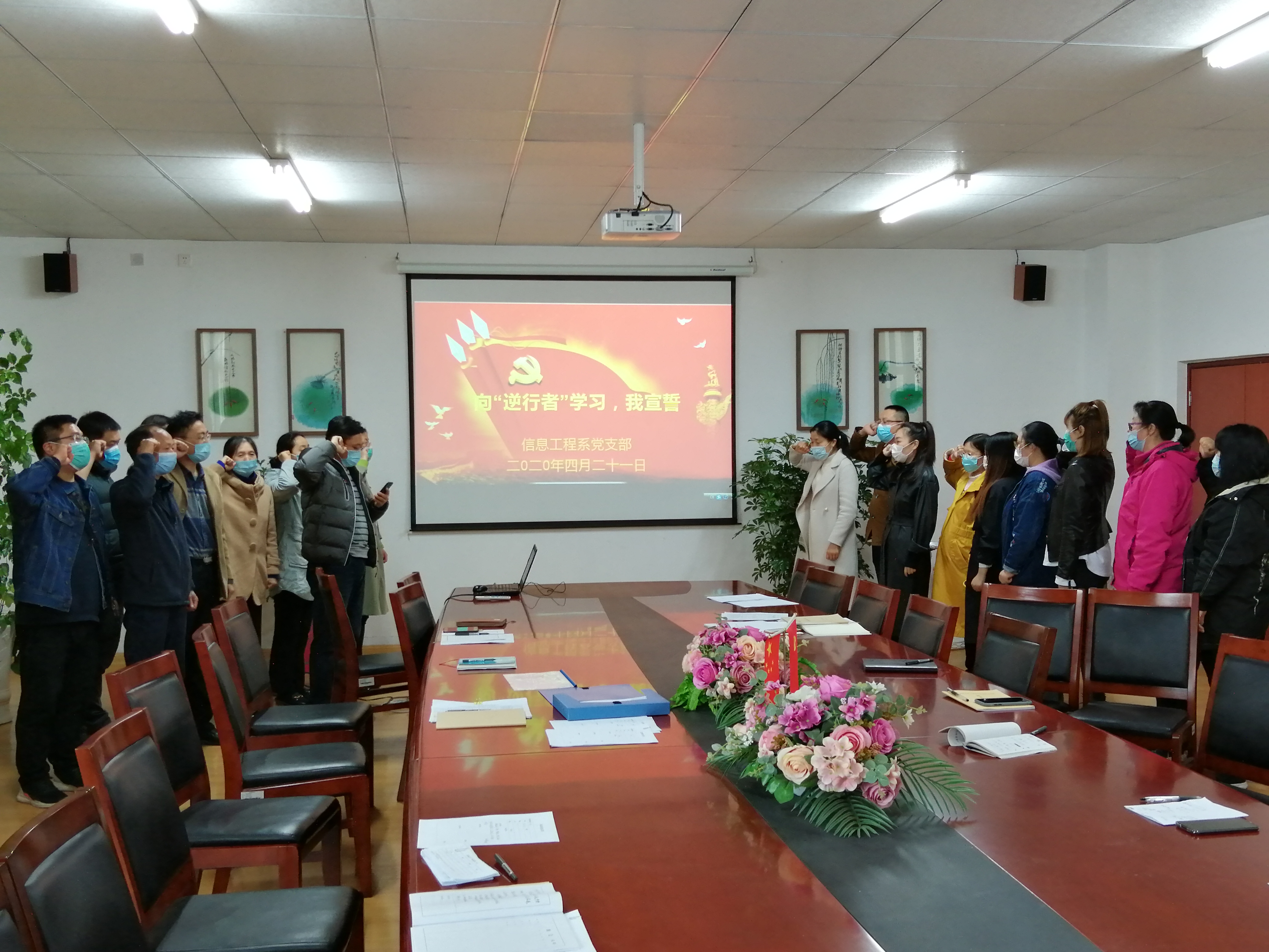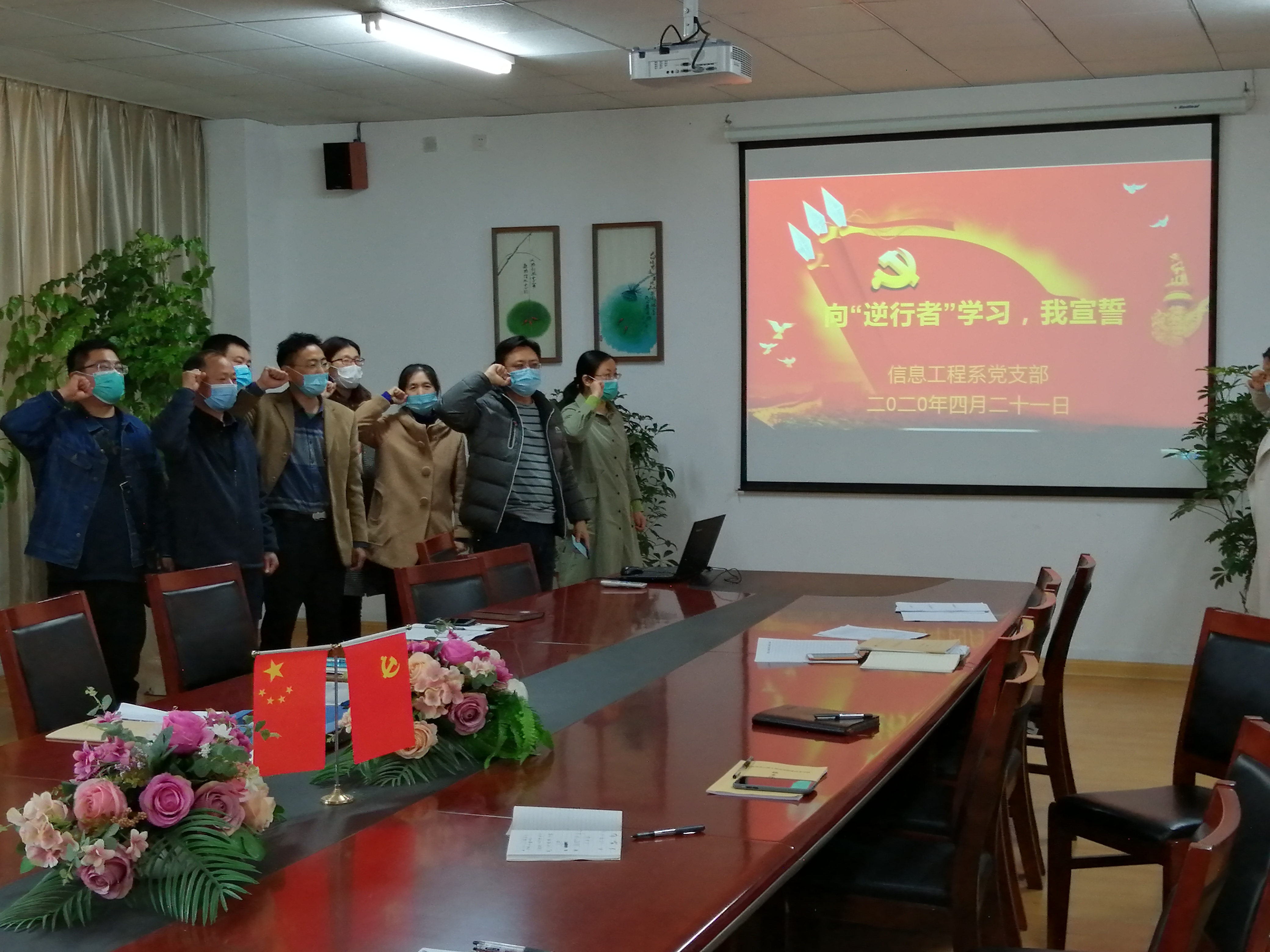 在疫情战危机时刻,有一批“逆行者”奔赴疫情一线,受到他们的感召。信息工程系党支部在2020年4月21日下午隆重举行向“逆行者”学习,宣誓活动。