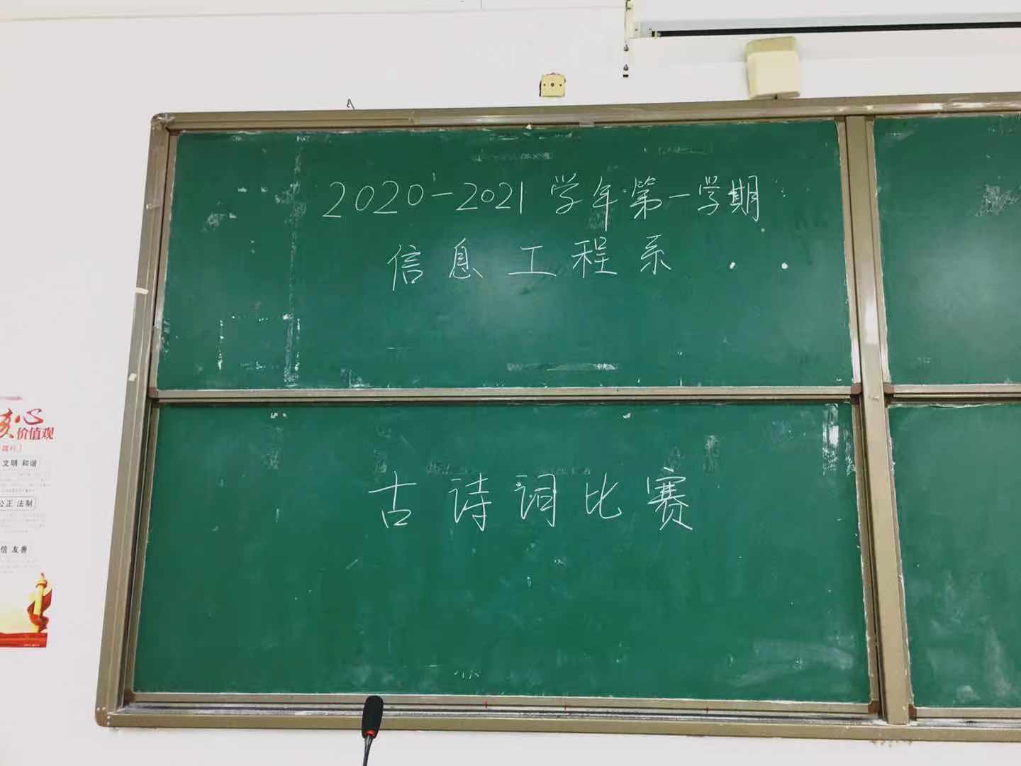 为了丰富校园文化,传承中华民族文化瑰宝,加深学生对古诗词的深入理解,信息工程系12月23日下午,举办了古诗词比赛活动。