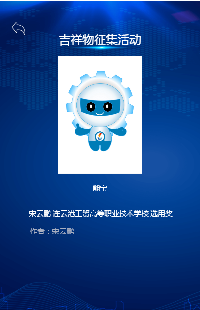 在第五届江苏状元技能大赛吉祥物设计活动中18高职计算机二班宋云鹏同学在尹蕾与殷晏君老师的指导下,以“弘扬工匠精神 技能成就梦想”为主要设计理念,设计出吉祥物“能宝”荣获本次比赛活动第一名选用奖,并获省人力资源和保障厅颁发的奖金。贯彻落实了习近平主席关于技能人才和技工教育的指示精神,大力弘扬劳动光荣、技能宝贵、创造伟大的社会风尚。