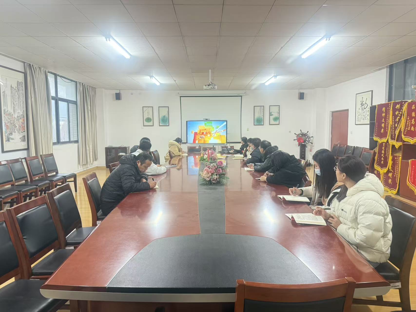 2025 年 12 月 23 日下午,信息工程系党支部在系部会议室开展了党员固定学习日活动。本次活动聚焦学习焦点访谈《擘画新蓝图》以及微视频《总书记擘画中国式现代化新篇章》。本次学习活动旨在深入学习党的最新理论成果,增强党员的政治意识和大局意识。