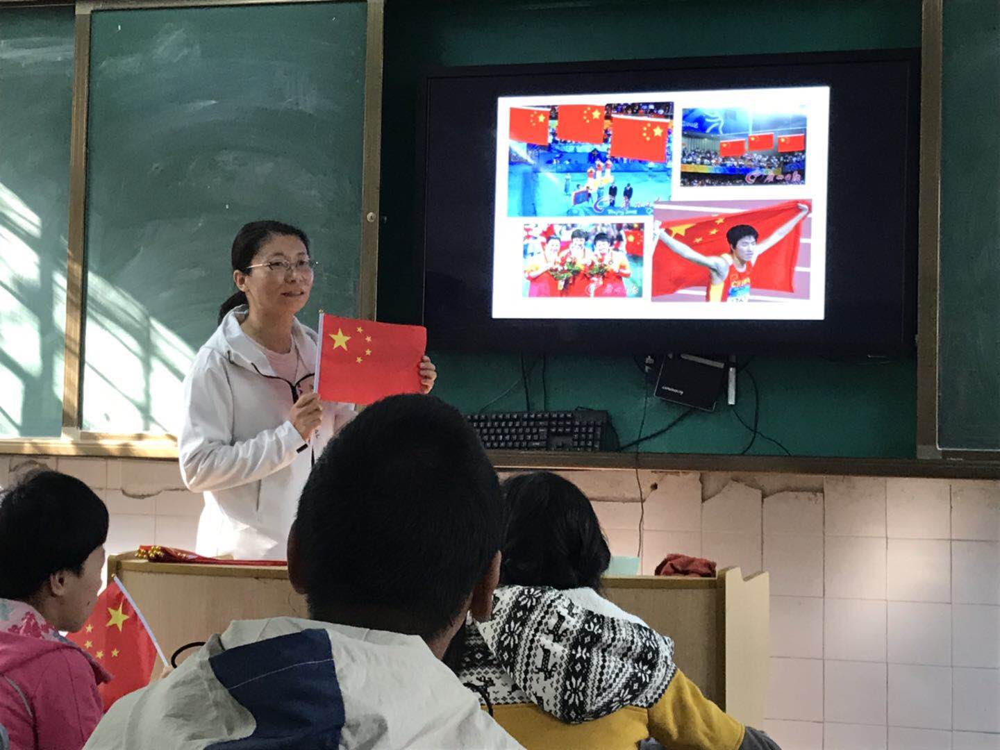 今天安排了一个老生班级与我们一同开展爱国主义教育主题课。走进班级,开始上课了:学生们扬起天真无邪笑脸,满面的期待,也许他们还听不懂老师讲的话意,也许他们还无法用清晰的言语来表达自己的情感,但是作为老师,我们所能感觉到他们的认真和配合,他们竭力想表达和展现自己,他们认识国旗,知道国旗代表祖国,听得懂国歌,看过建国70周年阅兵仪式,他们敬重和感恩祖国母亲,爱国之情溢于言表。
