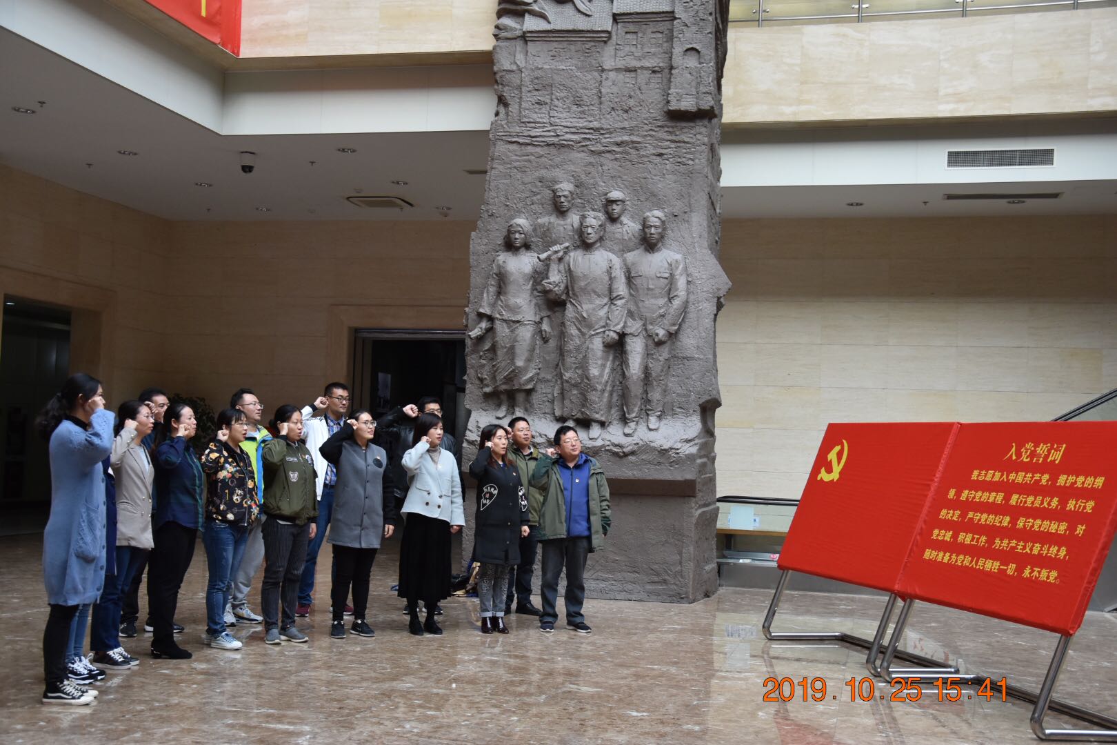 围绕“不忘初心、牢记使命”主题教育活动,10月25日,经济贸易系党支部在连云港市革命纪念馆开展了“四重四亮”主题活动,全体党员重温入党誓词,并进行回顾革命历史参观教育。通过本次主题党日活动,进一步引导支部全体党员回顾党的光辉历程,缅怀党的丰功伟绩,弘扬党的优良作风,坚定信念、提振精神、敢于担当、奋发作为,不断为经济贸易系的发展提供坚强组织保证和强大精神动力。