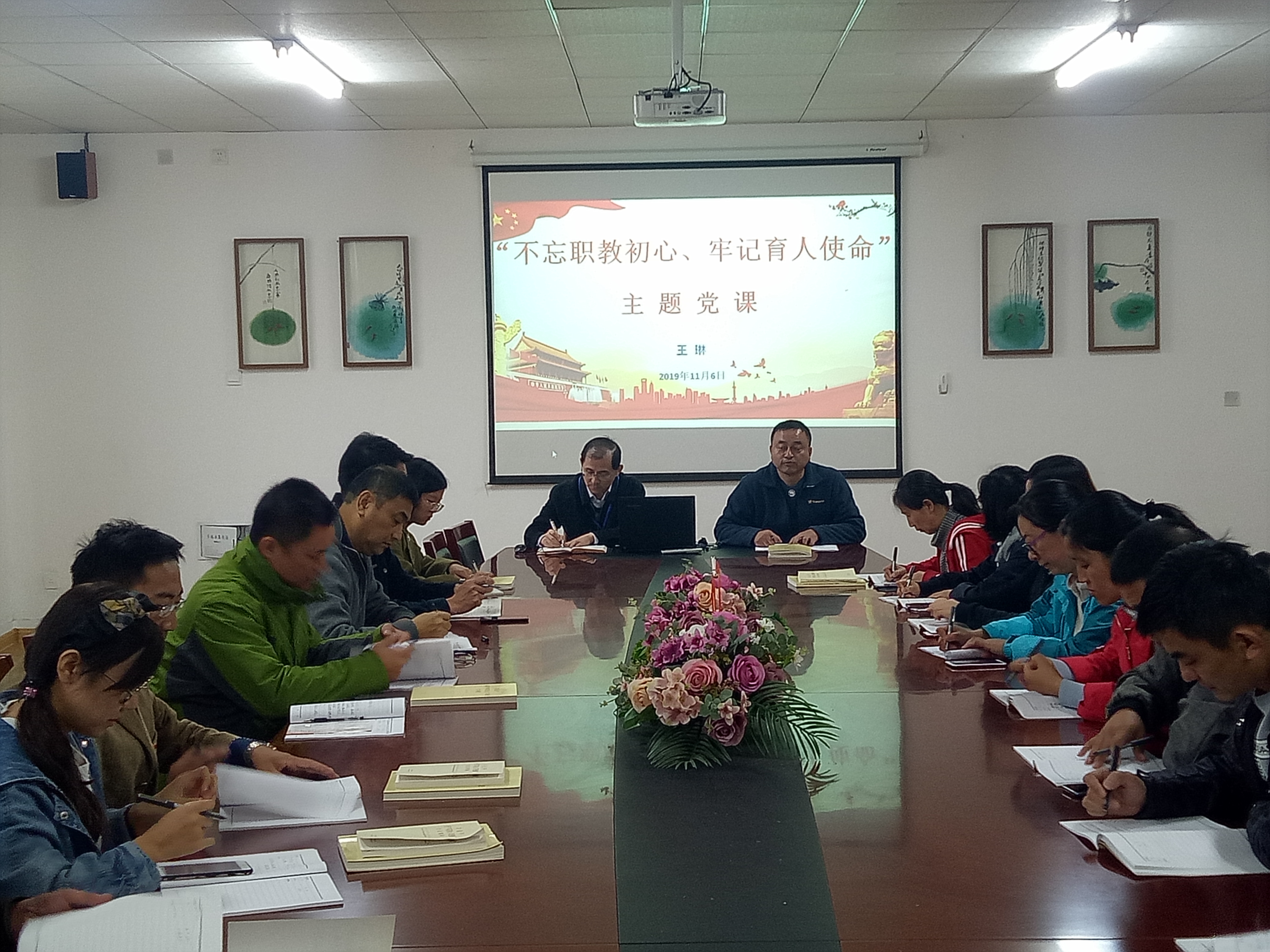 按照学校“不忘初心、牢记使命”主题教育要求,11月6日下午,信息工程系支部及行政三支部在信息工程系会议室召开支部大会,开展专题党课学习活动。会议由信息工程系支部副书记孙孝泊主持,王琳校长就“不忘职教初心,牢记育人使命”为主题给大家讲党课,两个支部的全体党员参加。